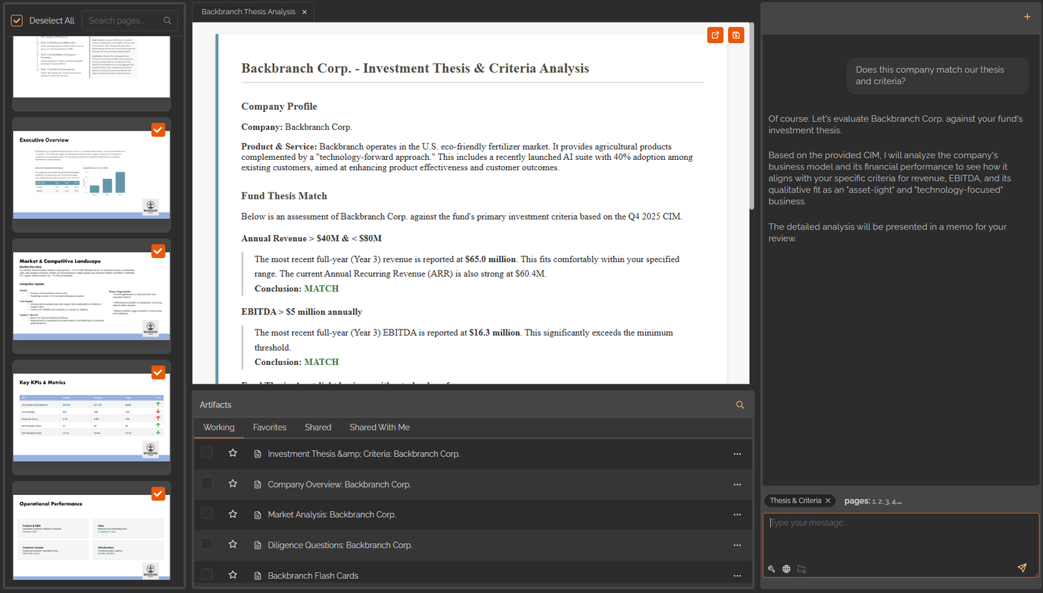 Ready for more? Watch the video to see Engramic in action using the following tools: Overview, Market Analysis, and Diligence Questions.